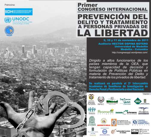 Estamos participando en la organización académica del Primer Congreso Internacional sobre Prevención del Delito y Tratamiento de las Personas Privadas de la Libertad (http://congresoppl.wordpress.com/), que se celebrará en paralelo al Segundo Intercambio Académico de Semilleros de Derecho Penal y Penitenciario de Colombia (http://derechopenitenciario.org/eventos/) durante los días 9, 10 y 11 de Noviembre de 2011, en la Universidad de Medellín.